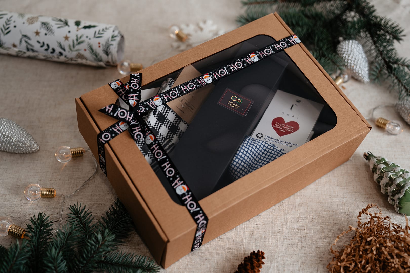 Sušvelninkite kasdienybę ir suteikite jaukumo savo namams su šiuo ypatingu dovanų rinkiniu, kuriame subtiliai derinami namų kvapas ir elegantiškos kojinės, pritaikytos tiek moterims, tiek vyrams.